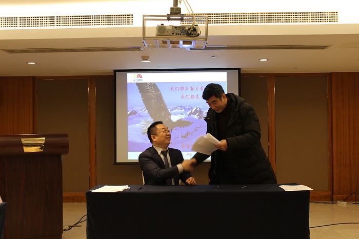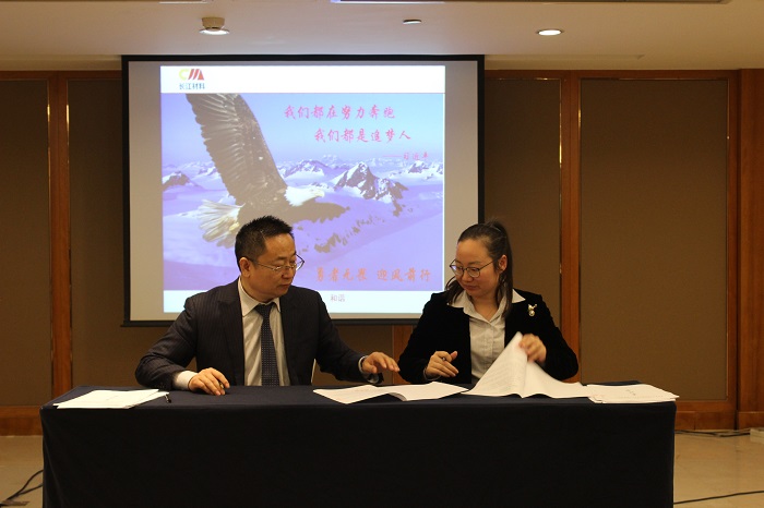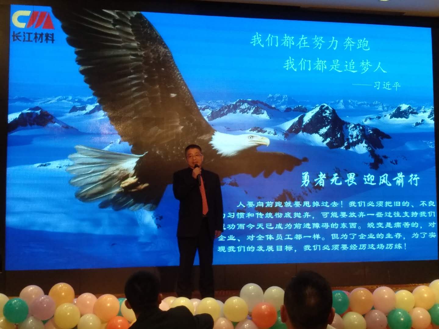 参加会议的有集团董事长、总经理、子公司总经理、副总经理和职能中心总监。集团总经理与子公司总经理签订《2019安全环保责任书》。 2019年1月14日下午举办了隆重的“长江材料颁奖庆典”。