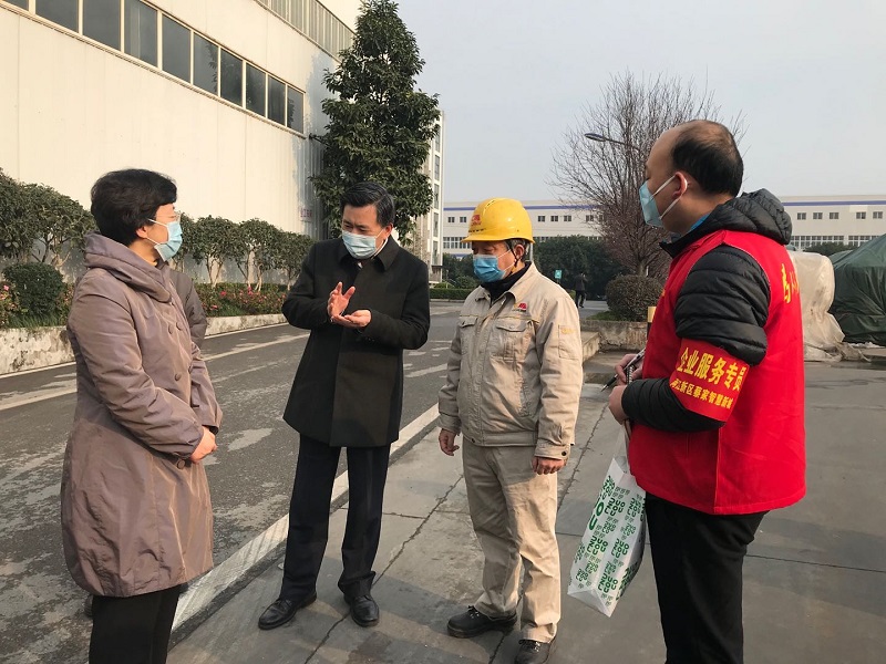 2020年2月19日上午,重庆长江造型材料(集团)股份有限公司同兴工厂,作为北碚区第一批复工复产企业,重庆市委常委、北碚区委书记、蔡家组团工业园等领导来到企业了解复工复产情况和需要政府协调解决的困难。领导们来到员工食堂、宿舍实地检查防疫工作,助推企业复工复产。