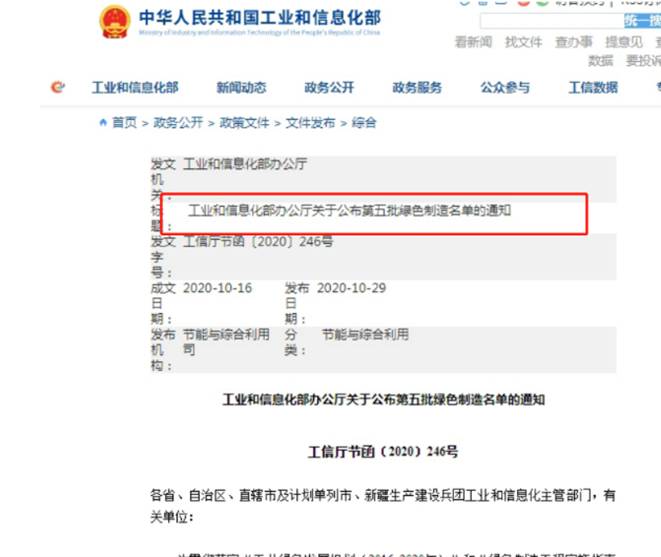 2019年9月,长江材料列入重庆市经信委第二批绿色制造体系示范单位。2020年10月,长江材料列入国家工业和信息化部列入第五批绿色工厂。