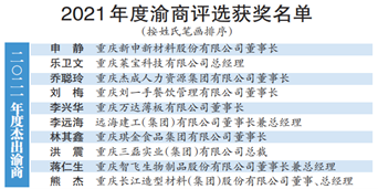 由重庆日报报业集团、重庆市总商会联合主办的“2021年度渝商评选”于今年8月正式启动,共有132位企业家参与评选。经过资格遴选、部门意见征集、组委会实地考察等评选环节后,10月15日,由专家评审会评选出拟获奖名单。经过一周的公示,最终于10月24日正式公布,长江材料集团公司总经理熊杰被评选为“2021年度杰出渝商”。