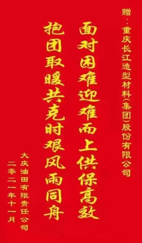 大庆油田送来“共克时艰风雨同舟”锦旗