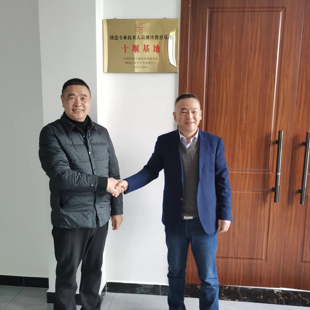 2019年9月,中国机械工程学会铸造分会(以下简称“铸造学会”)向中国机械工程学会递交了“中国机械工程学会国家级专业技术人员继续教育基地合作机构申请书”,并于当年11月获批“中国机械工程学会国家级专业技术人员继续教育基地金属液态成形培训中心”。为了做好这个培训中心的工作,铸造学会根据教育培训工作的需求开展铸造工程技术人员继续教育基地建设相关工作。重庆长江造型材料(集团)股份有限公司十堰分公司(以下简称“十堰长江公司”)是我会的培训基地之一,该基地的揭牌仪式于2022年1月8日下午在十堰举行,参加仪式的人员有铸造学会秘书长刘鸿超、副秘书长刘秀玲、秘书王云霞、郭宝树,重庆长江造型材料(集团)股份有限公司总经理熊杰,重庆长江造型材料(集团)股份有限公司十堰公司董事长姚武李、总经理蔡颖,十堰市铸造行业协会秘书长刘汉涛、副秘书长金丽等。首先,铸造学会刘秀玲副秘书长向十堰长江公司总经理蔡颖授牌,之后举行了隆重的揭牌仪式,铸造学会刘鸿超秘书长和十堰长江公司董事长姚武李共同为培训基地揭牌,两人就今后培训基地工作达成共识。
