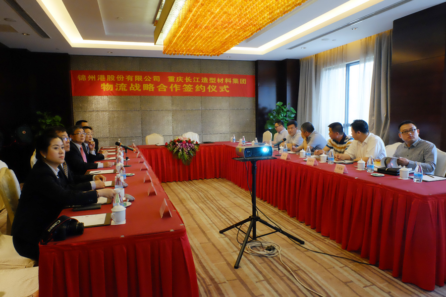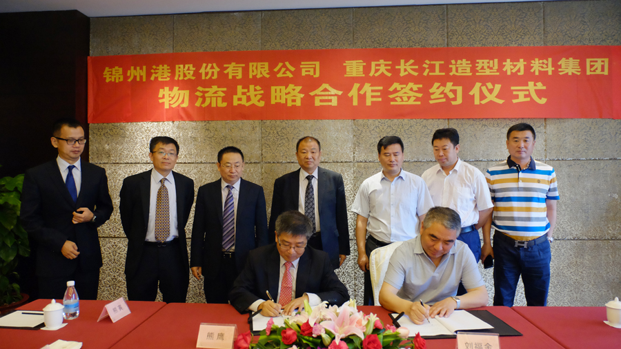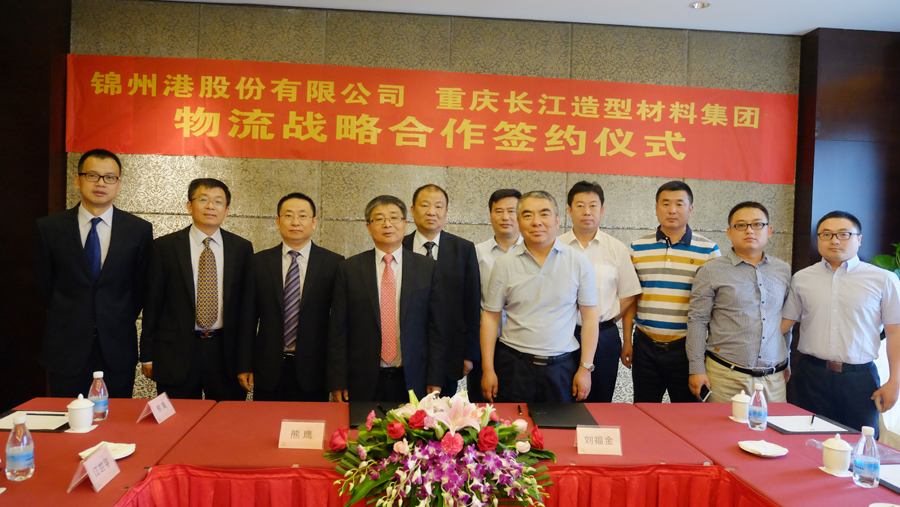 2016年5月27日,锦州港股份有限公司与重庆长江造型材料(集团)股份有限公司在重庆举行“物流战略合作签约仪式”。 重庆长江造型材料(集团)股份有限公司董事长熊鹰、总经理熊杰、副总经理熊壮、周立峰、江世学、熊伟。锦州港股份有限公司副总裁刘福金、锦州港集装箱码头有限公司总经理刘刚、锦州港集装箱总经理张继宁、隆承泰实业有限公司董事长尹东等参加签约仪式。